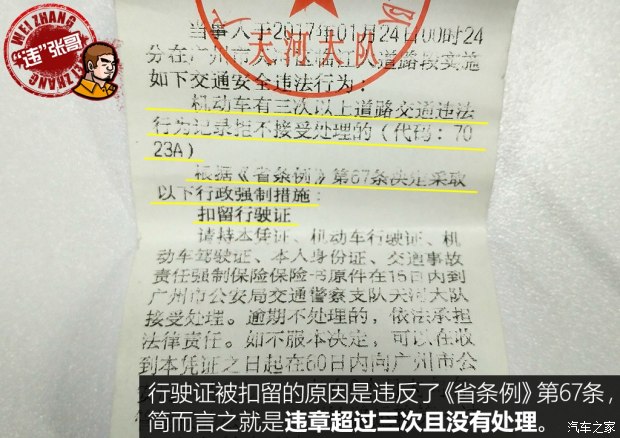 “違”張哥這個(gè)系列的選題原本都是我的同事張欣在更新,而我(廣州分站編輯陳海傭)平時(shí)很少寫用車類文章,但每次只要寫就說(shuō)明我又?jǐn)偵鲜铝?。這次比較尷尬,在春節(jié)放假前夕,因?yàn)檫`章過(guò)多被交警扣留行駛證。表面是把違章處理完就能拿回行駛證,可沒(méi)想到整個(gè)過(guò)程竟是如此一波三折,很多細(xì)節(jié)需要注意。據(jù)統(tǒng)計(jì),在今年春節(jié)期間,就有超過(guò)220萬(wàn)多條違章產(chǎn)生,不知道大家有沒(méi)有中招。如果有并且違章次數(shù)超過(guò)三次,那就要特別注意了,也希望我這次親身經(jīng)歷的分享能夠給大家一些啟發(fā)。