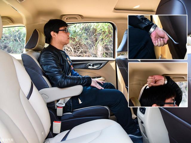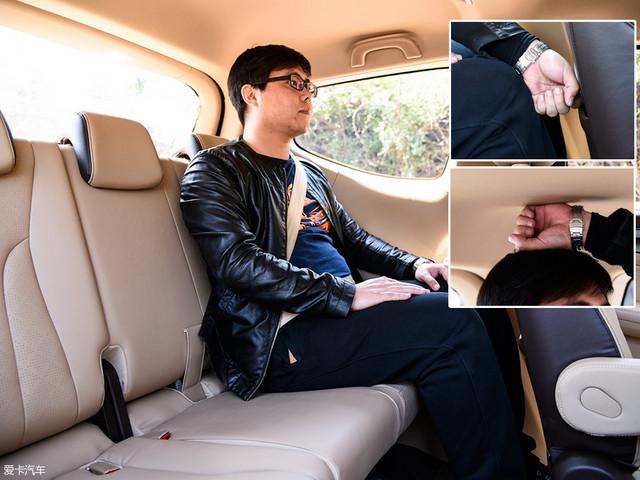 保持前排座椅不動(dòng),同一體驗(yàn)者來(lái)到第二排,頭部空間同樣剩余一拳多,腿部空間也是一拳有余。