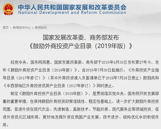 三文件均自2019年7月30日起施行,此前的《外商投資準(zhǔn)入特別管理措施(負(fù)面清單)(2018年版)》、《自由貿(mào)易試驗(yàn)區(qū)外商投資準(zhǔn)入特別管理措施(負(fù)面清單)(2018年版)》和《外商投資產(chǎn)業(yè)指導(dǎo)目錄(2017年修訂)》(其中外商投資準(zhǔn)入負(fù)面清單已于2018年7月28日廢止)鼓勵(lì)類及《中西部地區(qū)外商投資優(yōu)勢(shì)產(chǎn)業(yè)目錄(2017年修訂)》同時(shí)廢止。