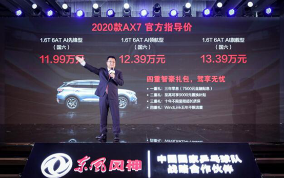 7月25日,東風風神2020款A(yù)X7正式上市,此次共上市3款國六車型,官方指導(dǎo)價11.99-13.39萬元。