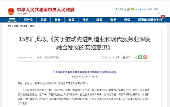 《關(guān)于推動先進(jìn)制造業(yè)和現(xiàn)代服務(wù)業(yè)深度融合發(fā)展的實(shí)施意見》
