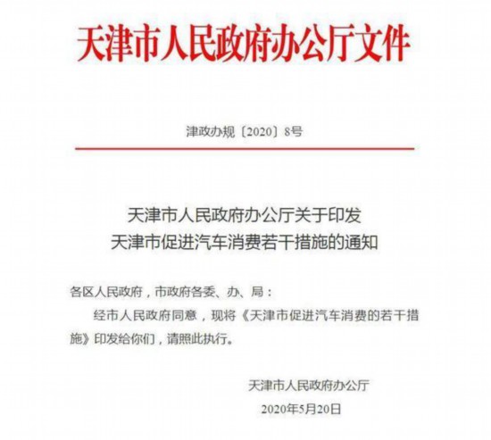 5月20日,天津市人民政府辦公廳印發(fā)《天津市促進(jìn)汽車消費(fèi)的若干措施》(以下簡(jiǎn)稱《措施》),2020年內(nèi)新增小客車個(gè)人增量指標(biāo)配置額度35000個(gè)。