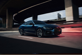 全新BMW 4系雙門轎跑車的設計現(xiàn)代且極富感召力,線條剛柔兼濟,表面凹凸有致,行駛在路上好似一臺流動的藝術品。側身線條動感修長,整體車身尺寸較前代車型進一步加大,車身長度增加103毫米,車身寬度增加27毫米,運動氣質渾然天成。長發(fā)動機罩、長軸距、短前懸結合流暢的車頂線條使車輛輪廓極具魅力。兩條犀利的車身腰線營造出俯沖之勢,并延伸至車尾,勾勒出寬大而健碩車肩,從視覺上拉伸了橫向寬度,令車輛呈現(xiàn)出更加低重心的姿態(tài)。修長的熏黑全LED尾燈造型,以及雙邊單出的排氣布局,彰顯了車輛的靈動氣息。