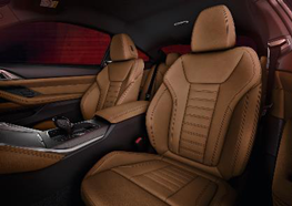 打開跑車專屬的無框式車門,迎賓光毯映入眼簾,彰顯匠心獨運的運動豪華氣息。全新BMW 4系雙門轎跑車的客艙設計現(xiàn)代而簡約,每一處細節(jié)都體現(xiàn)了BMW經(jīng)典的“以駕駛者為中心”的設計理念。Sensatec合成皮儀表板搭配智能感應氛圍燈、高級三區(qū)自動空調與帶換擋撥片的M運動型多功能真皮方向盤,讓越級豪華的舒適感和動感十足的駕馭感撲面而來。同時,新開發(fā)的前排M運動型座椅采用人體工程學設計,擁有卓越的包裹和支撐效果。轎跑車專屬的安全帶推送功能讓車主于從容優(yōu)雅間,彰顯天性沖動的不羈個性。向駕駛員一側傾斜的中央控制臺,為前排座椅乘員營造出一種環(huán)繞式氛圍。配備一體式頭枕的獨立式后排座椅設計獨特,可輕松容納兩名乘員。降噪風擋玻璃通過精心設計,有效地將風噪轉移到車身周圍,為車內營造出更加靜謐、舒適的駕乘體驗。