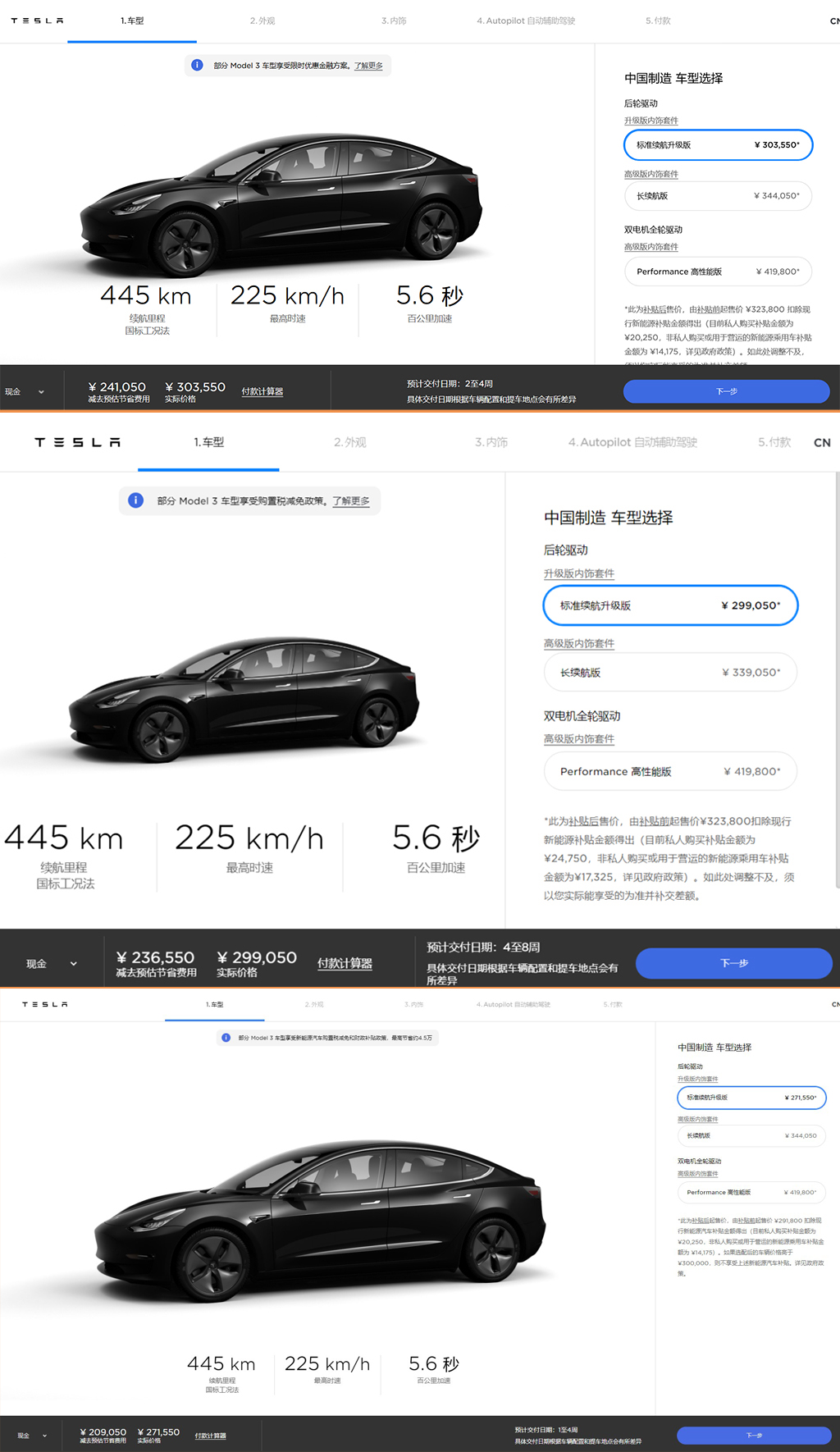 長期以來,特斯拉涉及新產(chǎn)品及價(jià)格調(diào)整的多起事件,曾引起用戶的廣泛質(zhì)疑。此前,Model 3標(biāo)準(zhǔn)續(xù)航后驅(qū)升級(jí)版的進(jìn)口車售價(jià)36.39萬元,而在國產(chǎn)后,該車型售價(jià)在補(bǔ)貼后降至29.905萬元,降幅高達(dá)6.485萬元,不免讓早先購買了進(jìn)口版本的消費(fèi)者有些“心酸”。2020年,特斯拉Model 3標(biāo)準(zhǔn)續(xù)航后驅(qū)升級(jí)版又再度經(jīng)歷調(diào)整,截至目前其補(bǔ)貼后售價(jià)為27.155萬元。