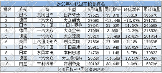 9月,軒逸以5.75萬輛的成績再沖月度新高,同比大增33.87%;相比之下,朗逸同環(huán)比降幅均達(dá)到兩位數(shù),9月銷量僅為3.96萬輛。前三季度,軒逸累計銷售36.57萬輛,超過朗逸約7.4萬輛,奪得A級車市年度銷量冠軍已是指日可待。