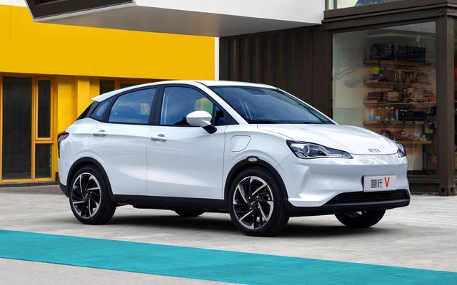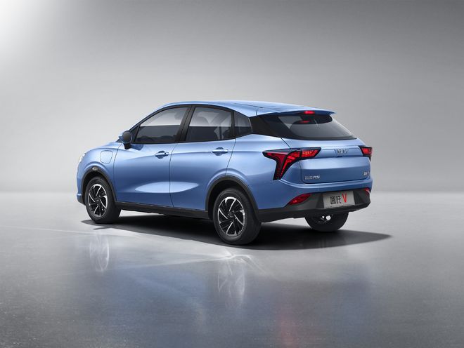 在外觀設(shè)計上,哪吒V整車外觀采用海豚流線低風(fēng)阻造型,下壓式的車頭設(shè)計、封閉式的前格柵,配合幾何波紋狀的下進氣格柵。哪吒V車長4070mm,寬1690mm,高1540mm, 軸距2420mm。