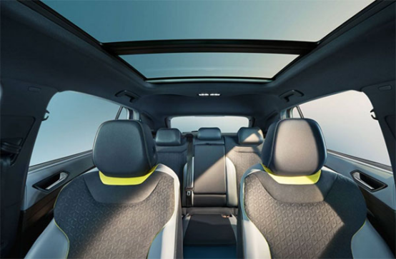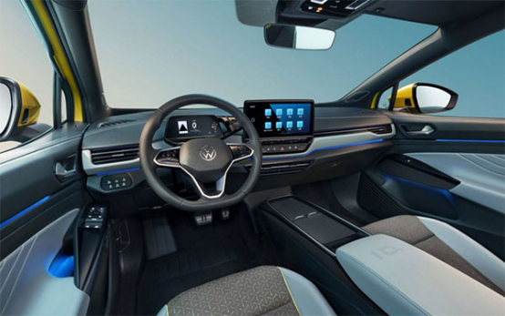 ID.4長寬高分別為4,592 mm x 1,852mm x 1,629 mm,軸距為2,765 mm。受益于MEB架構(gòu),ID.4車內(nèi)空間十分寬敞,全景玻璃車頂讓車內(nèi)更加通透。內(nèi)飾所運用的色彩和材料極具現(xiàn)代感,懸浮式的儀表盤與中控臺采用獨立式的設(shè)計,體現(xiàn)出極簡風格。另外,車輛還設(shè)有可自定義的30色背景氛圍燈,為內(nèi)飾增色不少。