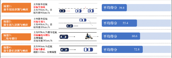 2022年,中汽中心首次新增輔助駕駛測評板塊,對智能網(wǎng)聯(lián)汽車的輔助駕駛系統(tǒng)進行全面綜合評價。結(jié)果顯示,參與測試的22款熱銷車型,輔助駕駛綜合表現(xiàn)平均得分僅52.9,最高得分87.0,有些受測車型沒有配備輔助駕駛功能,則得分為0。