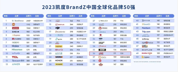 江淮汽車榮登BrandZ全球化品牌50強(qiáng)第36位