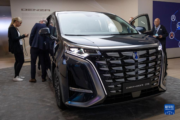 9月4日,在德國慕尼黑國際車展媒體預(yù)展上,人們在比亞迪品牌發(fā)布會現(xiàn)場體驗(yàn)騰勢D9汽車。