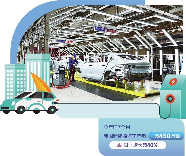 新能源汽車是全球汽車產(chǎn)業(yè)轉(zhuǎn)型升級(jí)、綠色發(fā)展的主要方向,也是我國(guó)汽車產(chǎn)業(yè)高質(zhì)量發(fā)展的戰(zhàn)略選擇。今年前7個(gè)月,我國(guó)新能源汽車產(chǎn)銷超過450萬輛,同比增長(zhǎng)超過40%。其中,出口63.6萬輛,同比增長(zhǎng)1.5倍,成為我國(guó)經(jīng)濟(jì)一個(gè)強(qiáng)勁增長(zhǎng)點(diǎn)。