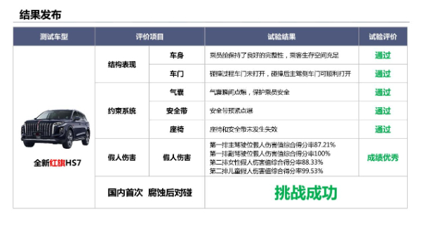 全新紅旗HS7成功通過(guò)腐蝕對(duì)碰挑戰(zhàn)并成為全國(guó)首個(gè)通過(guò)本次挑戰(zhàn)項(xiàng)目的車型,這一成績(jī)得益于一汽紅旗高品質(zhì)工藝。