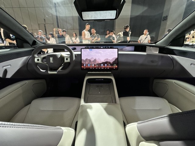 新車內(nèi)部配備“云境環(huán)擁式感應(yīng)座艙”,采用尺寸達(dá)到35.4英寸的4K全景寬屏,兩側(cè)配有流媒體后視鏡顯示區(qū)域,中央部位可顯示多項(xiàng)駕駛信息。另外,該車還配備一塊15.6英寸中控屏幕與造型新穎的多功能方向盤。細(xì)節(jié)部分,阿維塔12在座艙內(nèi)部使用大量Nappa真皮材質(zhì)進(jìn)行包覆,并配備超柔觸感類麂皮精致頂棚,整體極具質(zhì)感。