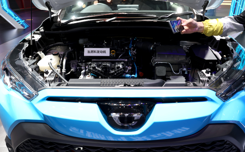 (資料圖片)豐田汽車公司在2023年上海國際車展展出的氫能源汽車的發(fā)動(dòng)機(jī)。新華社記者 陳建力 攝