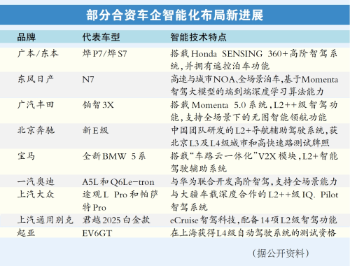 在業(yè)內(nèi)人士看來,這并非偶然。從時(shí)間軸上看,在經(jīng)歷了多年“上車?yán)щy”、研發(fā)成本高等轉(zhuǎn)型陣痛后,合資車企通過加快步伐,與本土科技企業(yè)合作,開始在高階智能駕駛領(lǐng)域迎頭趕上,縮小與自主品牌的差距?!皬碾妱?dòng)車到燃油車,從智駕系統(tǒng)到‘大彩電’,合資車企的智電轉(zhuǎn)型正在提速?!?/p>