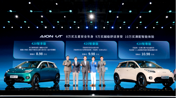 央廣網北京1月15日消息(記者 姜鵬)1月6日,埃安UT鸚鵡龍正式開啟預售,新車共推出420智享版、420智豪版、420智尊版3個版本,預售價8.98萬元-10.98萬元。
