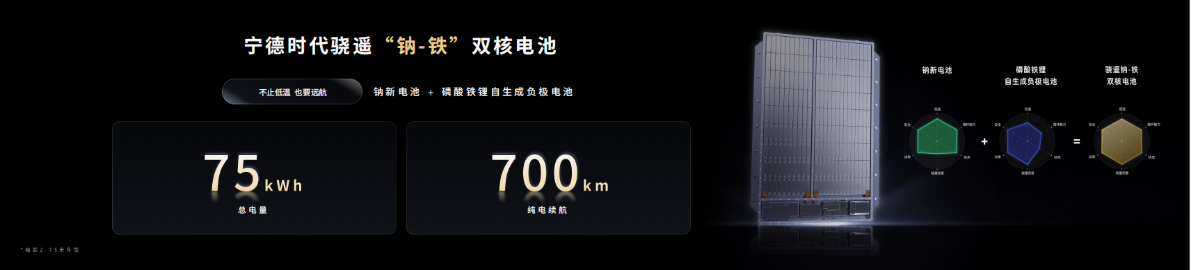 鈉-鐵雙核電池——:鈉新電池+磷酸鐵鋰自生成負(fù)極電池,充分利用鈉新電池的低溫性能,為用戶(hù)帶來(lái)不止低溫更要遠(yuǎn)航的極致體驗(yàn) 。