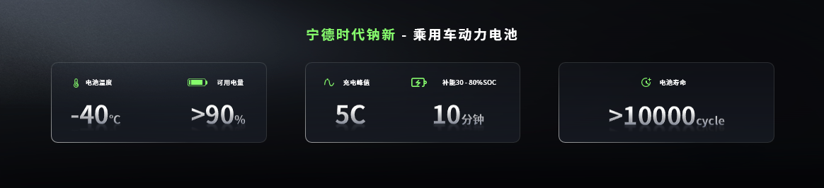鈉新電池包含兩類(lèi)產(chǎn)品,分別是鈉新乘用車(chē)動(dòng)力電池和鈉新24V重卡啟駐一體蓄電池,均可實(shí)現(xiàn)零下40℃至零上70℃的全溫域適配,重新定義了電池的極限溫域。其中,鈉新乘用車(chē)電池可在零下40℃的環(huán)境下,仍能保持90%的可用電量。在僅剩10%SOC(剩余電量)的極端狀態(tài)下,鈉新乘用車(chē)電池仍可做到零下40℃整車(chē)動(dòng)力基本不衰減,做到極寒如常溫。