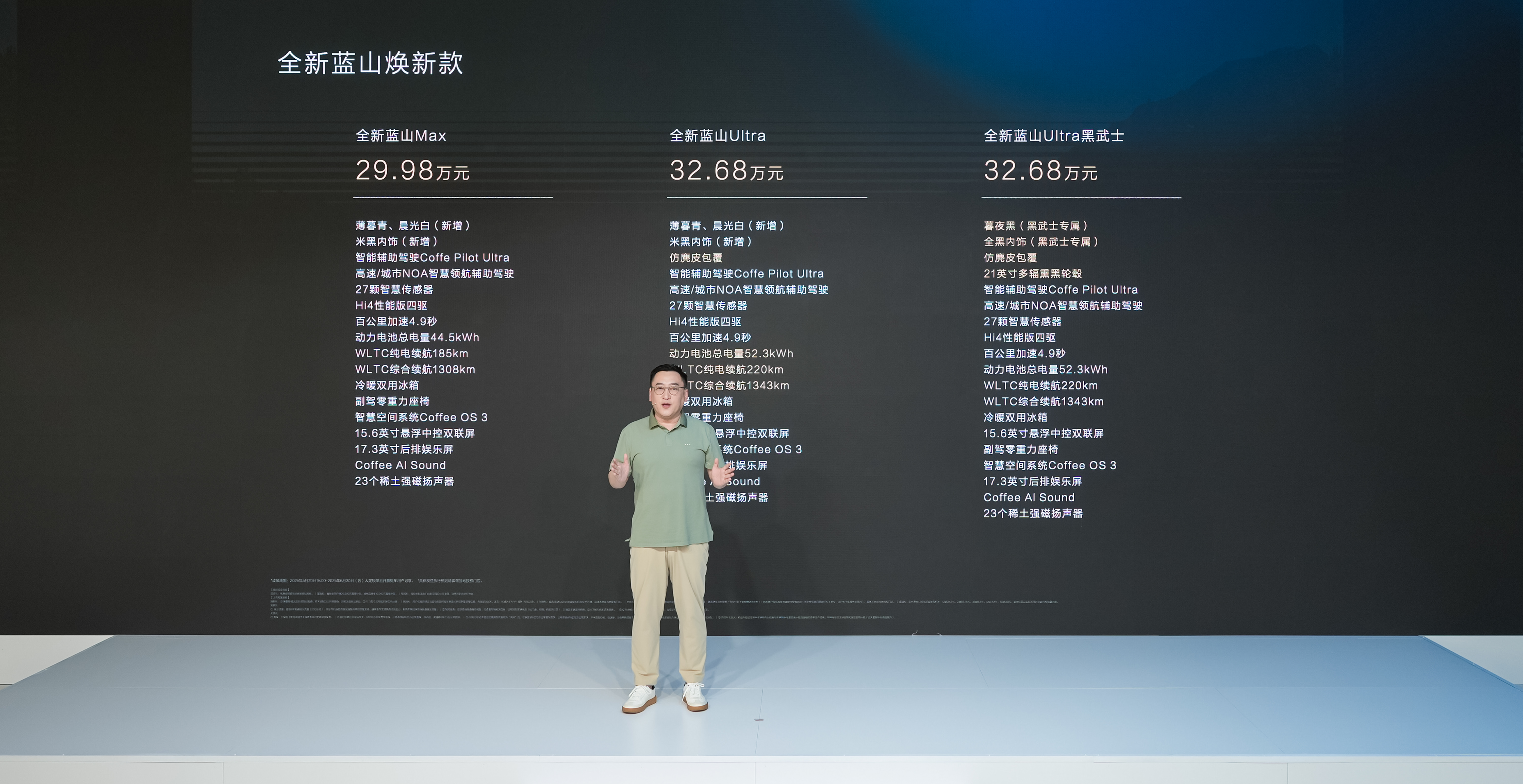 全新藍(lán)山煥新款正式發(fā)布,全新藍(lán)山煥新款MAX版、全新藍(lán)山煥新款Ultra版、全新藍(lán)山煥新款Ultra黑武士版售價(jià)分別為29.98萬(wàn)元、32.68萬(wàn)元、32.68萬(wàn)元。購(gòu)車用戶可享至高價(jià)值82,599元的限時(shí)煥新權(quán)益,魏牌老用戶置換全新藍(lán)山煥新款,可獲翻倍補(bǔ)貼及終身免費(fèi)流量。