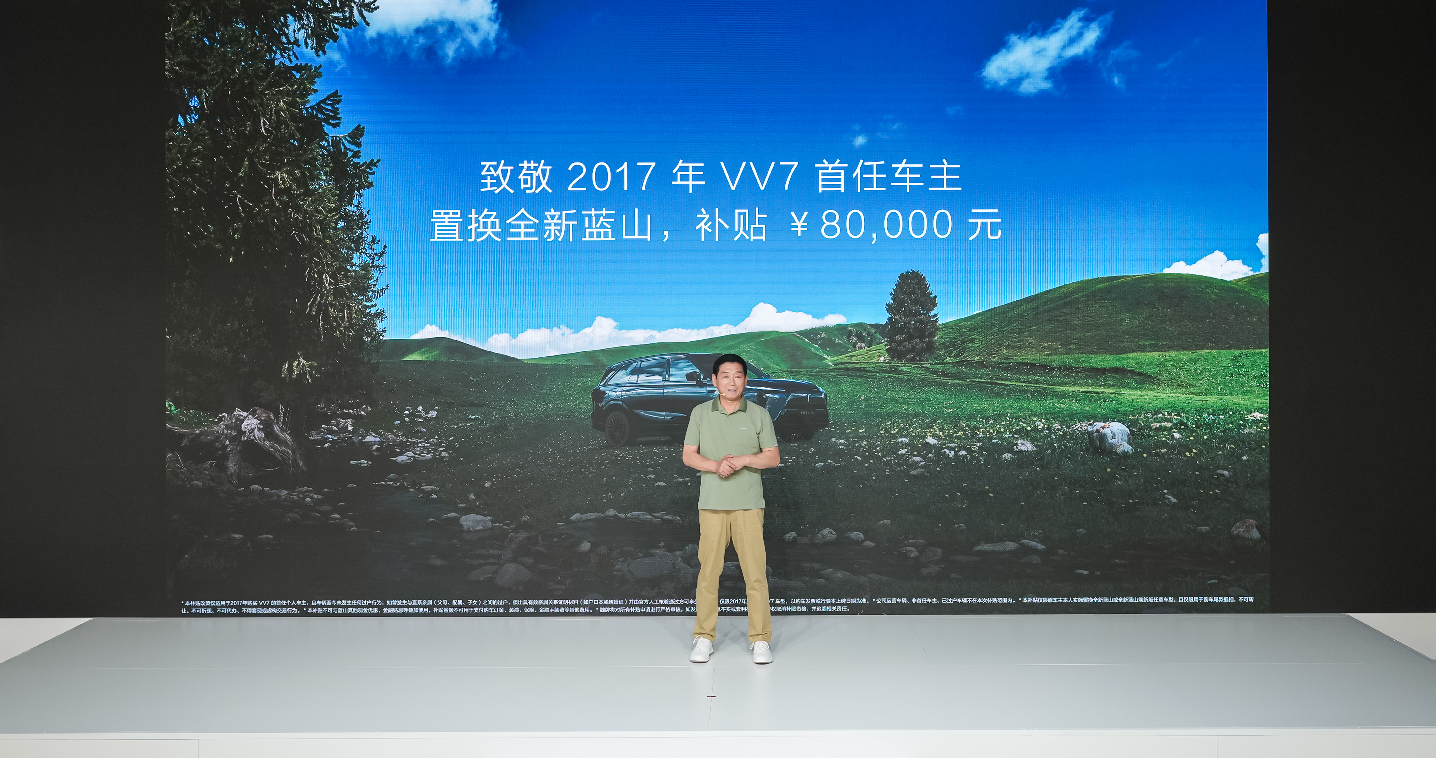 魏建軍表示:“我們不能虧待和忘記最初支持我們的那批用戶。要感謝他們最早支持我們魏牌。所以今天,為最早在2017年購(gòu)買VV7的首任車主補(bǔ)貼,在魏牌8周年之際,置換全新藍(lán)山,補(bǔ)貼8萬(wàn)。”