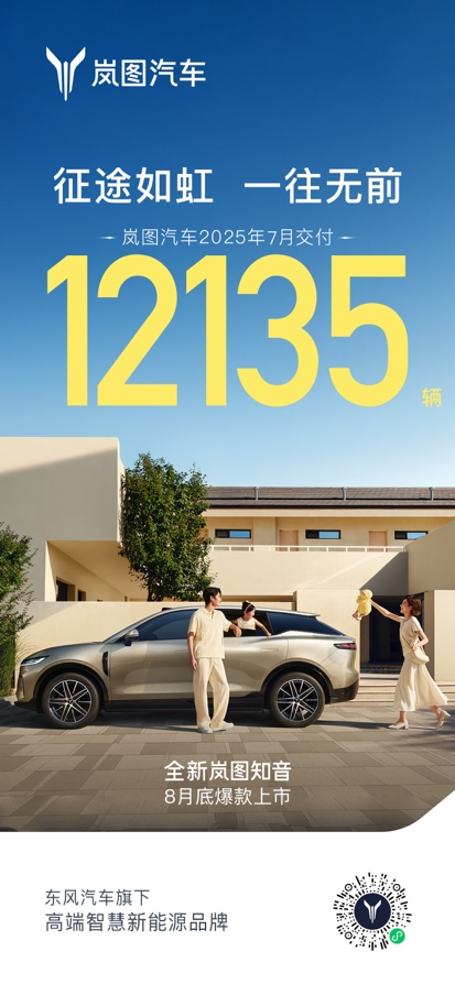 嵐圖汽車CEO盧放表示:“在用戶的支持下,嵐圖汽車7月延續(xù)高質量發(fā)展態(tài)勢,嵐圖夢想家穩(wěn)居銷量冠軍,全新上市的嵐圖FREE+也快速獲得市場認可,這進一步堅定了我們的發(fā)展信心。8月,我們將更進一步提速生產交付、升級服務體驗、加強用戶交流,并推出新產品——全新嵐圖知音,為用戶帶來更多優(yōu)質選擇,為品牌發(fā)展注入更強動能?!?/p>