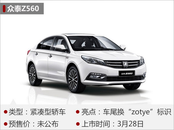 Z500是眾泰汽車旗下一款緊湊型轎車,其改款車型Z560將于3月28日正式上市。外觀方面,新車前臉保留雙橫幅式進氣格柵及鷹眼式前大燈組合,視覺效果比較大氣。而新車尾部則取消牌照框上方的Z型LOGO,更換為眾泰最新的“zotye”字樣標識。內飾方面,眾泰Z560儀表盤有所升級,增加了帶有行車電腦的中間液晶屏幕。新車將延用1.5T動力系統(tǒng),匹配5擋手動變速箱或CVT自動變速箱。其中,搭配手動變速箱車型最大功率將達105kW,峰值扭矩207Nm。