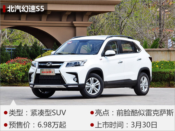 幻速S5是北汽集團的一款全新緊湊型SUV,將于3月30日正式上市。外觀方面,新車采用了極具辨識度的北汽幻速家族式前臉(紡錘式),與簡潔的尾部相呼應。內飾整體風格簡潔大氣,大尺寸屏幕是整車的亮點配置。北汽幻速S5將搭載1.6L自然吸氣/1.3L渦輪增壓兩款發(fā)動機,全系均匹配5速手動變速箱,其中1.3T發(fā)動機最大功率98kW,峰值扭矩為185Nm。(網(wǎng)上車市 2017年3月27日北京報道)