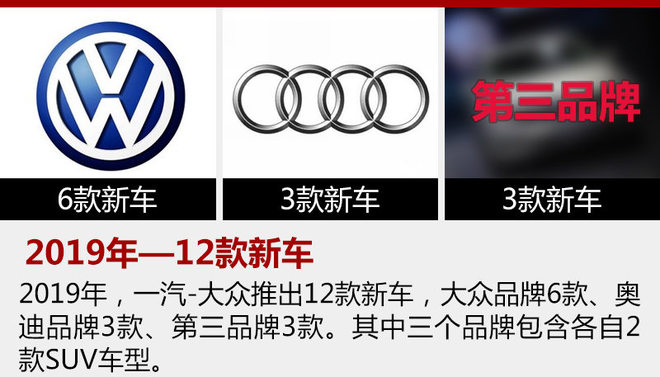 2017年進(jìn)入下半年,一汽-大眾就開(kāi)始籌劃2025戰(zhàn)略,以完成更高的銷量目標(biāo)和更長(zhǎng)遠(yuǎn)的發(fā)展。同時(shí),官方還表示將在兩年內(nèi)推出23款新車,并包含大眾、奧迪以及第三品牌。此前,一汽-大眾汽車有限公司企業(yè)品牌資訊發(fā)言人、公關(guān)總監(jiān)黃龍向網(wǎng)通社表示:“在未來(lái)的車型投放方面, 2018年共有11款新品投放,其中大眾品牌7款,奧迪品牌4款?!?/p>