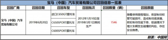 同時(shí),寶馬(中國)汽車貿(mào)易有限公司自即日起召回2012年1月10日至2018年3月1日期間生產(chǎn)的進(jìn)口C650GT、C650SPORT、C600SPORT摩托車,共計(jì)1546輛。