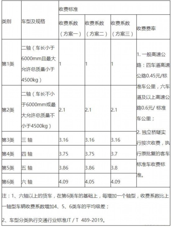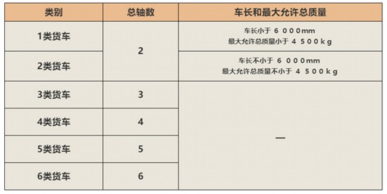 貨車計(jì)費(fèi)方式由計(jì)重收費(fèi)改為按車型收費(fèi)。以前貨車計(jì)重收費(fèi),是以收費(fèi)站現(xiàn)場稱出的車貨總質(zhì)量為依據(jù)計(jì)收通行費(fèi),不同噸位車輛收費(fèi)金額不同,“多裝多收,少裝少收”。改為按車型收費(fèi)后,以車輛軸數(shù)為依據(jù)計(jì)收通行費(fèi),同一軸型車輛,不論裝多裝少,都執(zhí)行同一收費(fèi)標(biāo)準(zhǔn)。