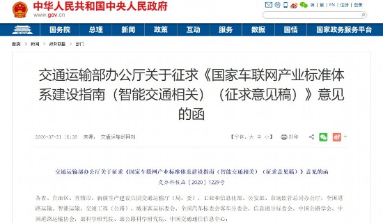 同日,交通運(yùn)輸部公開(kāi)發(fā)函,廣泛征求對(duì)《國(guó)家車(chē)聯(lián)網(wǎng)產(chǎn)業(yè)標(biāo)準(zhǔn)體系建設(shè)指南(智能交通相關(guān))(征求意見(jiàn)稿)》(以下簡(jiǎn)稱(chēng)《征求意見(jiàn)稿》)的意見(jiàn)。其中,對(duì)進(jìn)一步明確標(biāo)準(zhǔn)制修訂重點(diǎn),以及形成統(tǒng)一、協(xié)調(diào)的國(guó)家車(chē)聯(lián)網(wǎng)產(chǎn)業(yè)標(biāo)準(zhǔn)體系架構(gòu)作出部署。