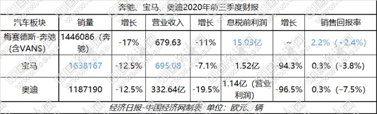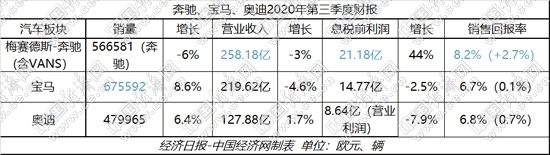 在此帶動下,BBA汽車業(yè)務(wù)一改二季度的虧損、下滑,三季度各主要財務(wù)指標(biāo)均呈現(xiàn)明顯回升,息稅前利潤及銷售回報率等更是實現(xiàn)由虧損轉(zhuǎn)向盈利,寶馬、奧迪在銷量上也分別達(dá)到8.6%和6.4%的同比正增長。BBA前三季度各指標(biāo),也因此實現(xiàn)了一定程度的提升。