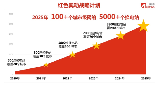4月19日,奧動以“極速”與“共享”雙擎啟動“紅色奧動戰(zhàn)略計(jì)劃”:打造100個(gè)以上城市級換電服務(wù)網(wǎng)絡(luò);建設(shè)5000座以上20秒極速換電站;形成服務(wù)200萬車輛規(guī)模以上的多品牌車型共享換電平臺。