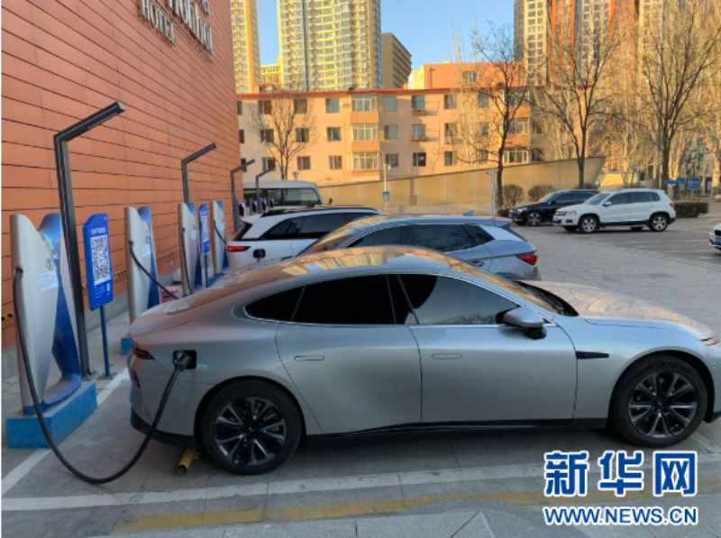 (資料圖片)6月6日,市民在重慶市兩江新區(qū)明月湖超充示范站給新能源汽車充電后離開。新華社記者 王全超 攝