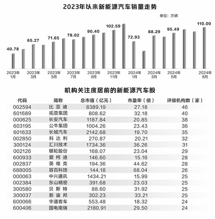 以舊換新政策加碼后,新能源汽車前景持續(xù)向好,多家機(jī)構(gòu)看好未來銷量進(jìn)一步增長。
