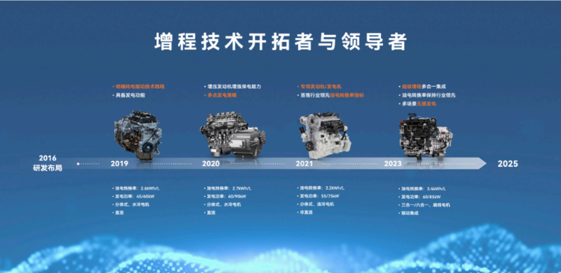 2019年,賽力斯實(shí)現(xiàn)增程器的量產(chǎn),推出“油電轉(zhuǎn)換率”概念,并且其油電轉(zhuǎn)換效率、功率表現(xiàn)優(yōu)異。2021年,賽力斯突破增程系統(tǒng)效率桎梏,“油電轉(zhuǎn)換率”再次提升。
