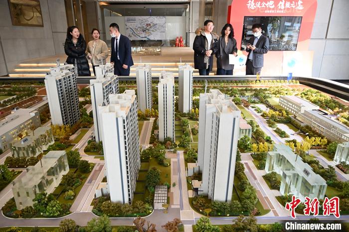 2月16日,內(nèi)蒙古呼和浩特市,購房者在售樓部關注樓盤信息。中新社記者 劉文華 攝