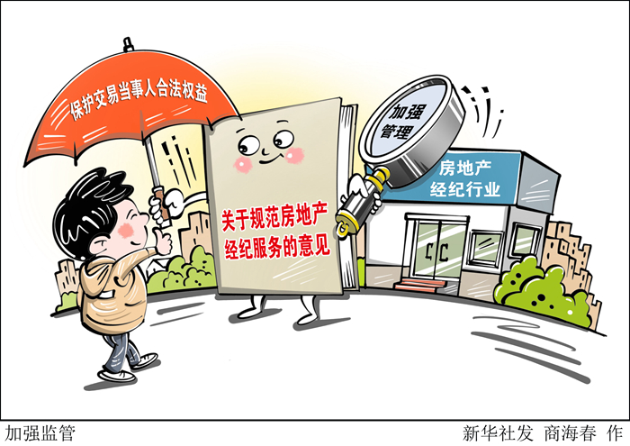 新華社北京5月8日電(記者王優(yōu)玲)加強(qiáng)經(jīng)紀(jì)從業(yè)主體管理,合理確定經(jīng)紀(jì)服務(wù)收費,嚴(yán)格實行明碼標(biāo)價,加強(qiáng)個人信息保護(hù)……住房和城鄉(xiāng)建設(shè)部、國家市場監(jiān)督管理總局8日對外發(fā)布意見,從十方面明確監(jiān)管措施,加強(qiáng)房地產(chǎn)經(jīng)紀(jì)行業(yè)管理,保護(hù)交易當(dāng)事人合法權(quán)益。