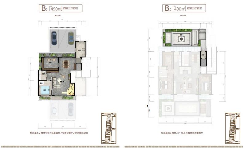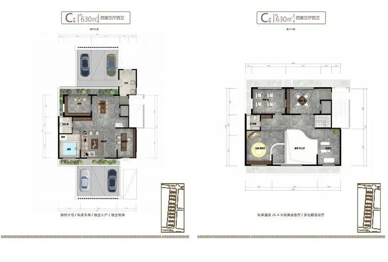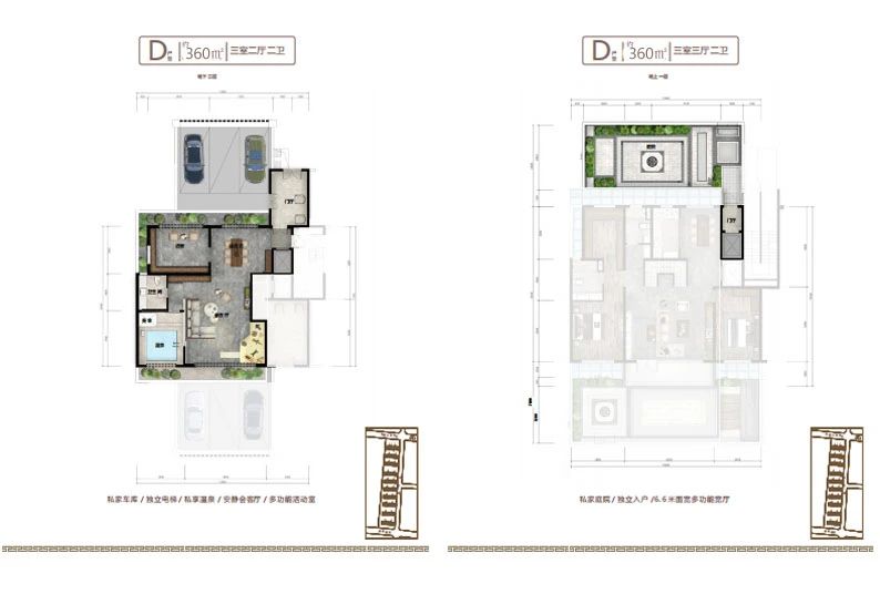 地下室設(shè)計不同于傳統(tǒng)地下室,只能為儲藏室使用,而小區(qū)地下室層高和地上建筑面積層高一致,達(dá)到了3.2米,沒有空間壓抑感,在南北庭院都設(shè)有1.2米的通風(fēng)采光井,室內(nèi)鋪設(shè)地暖及溫泉管道,上下水和衛(wèi)生間,私密性特強(qiáng),可以設(shè)計桑拿房,健身房,保姆間,洗衣房,酒窖及休閑娛樂等多功能區(qū)域,對于鄰居既不會產(chǎn)生噪音干擾,更不會打擾到家人的休息,在提高了生活品質(zhì)的同時也不會由空間局促感,地下室可以直通地下私家車庫,車庫層高4.2米,寬約7-10米,至少可以容納家用汽車三輛。