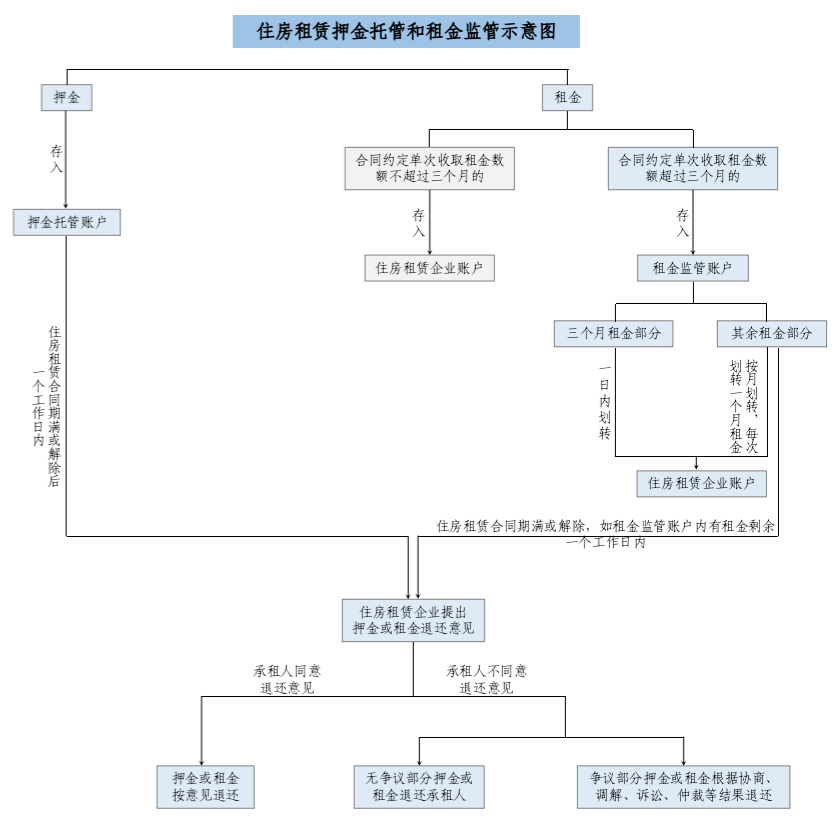 據(jù)了解,《北京市住房租賃條例》第三十六條規(guī)定,住房租賃企業(yè)向承租人收取的押金應(yīng)通過(guò)第三方專用賬戶托管,單次收取租金的數(shù)額超過(guò)三個(gè)月租金的,超收的租金應(yīng)當(dāng)納入監(jiān)管,并且明確住房租賃企業(yè)收取的押金由第三方專用賬戶托管。《征求意見稿》嚴(yán)格落實(shí)《北京市住房租賃條例》規(guī)定,進(jìn)一步制定相關(guān)實(shí)施細(xì)則,明確賬戶主體,規(guī)范押金托管、租金監(jiān)管業(yè)務(wù)流程。