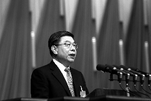昨日,市人大常委會主任杜德印作市人大常委會工作報告。 北京晨報記者 王穎/攝