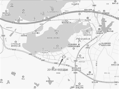 在昨天拍賣的9幅地塊中,位于江寧湯山街道的2019G81地塊并不起眼,甚至你在地圖上都很難找到它的具體位置——東北至無(wú)疆路,東南至萬(wàn)壽路,西南至樂泉路,西北至美樂路。這四條道路無(wú)論是在百度地圖還是高德地圖上,你都找不到它們的蹤影。