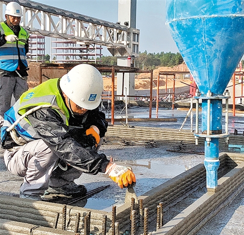 “工人可以趁著混凝土砂漿尚未凝固時(shí)在墻體底部開洞,為墻體內(nèi)的鋼筋籠與地基中的鋼筋焊接預(yù)留出空間?!敝薪ǘ謴V東建設(shè)基地有限公司科技部副經(jīng)理黃云補(bǔ)充說,“手感像是切蛋糕,操作起來相當(dāng)方便”。