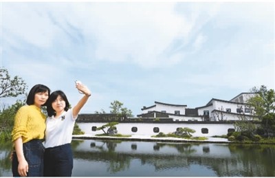 杭州臨平凈水廠“水美公園”采用“地下污水處理,地上綠地公園”模式建造,約7米深的地下是一片全封閉凈水廠,日處理20萬噸污水,在地面增加了約200畝的綠化面積。圖為市民在“水美公園”拍照留念。 龍 巍攝(人民圖片)