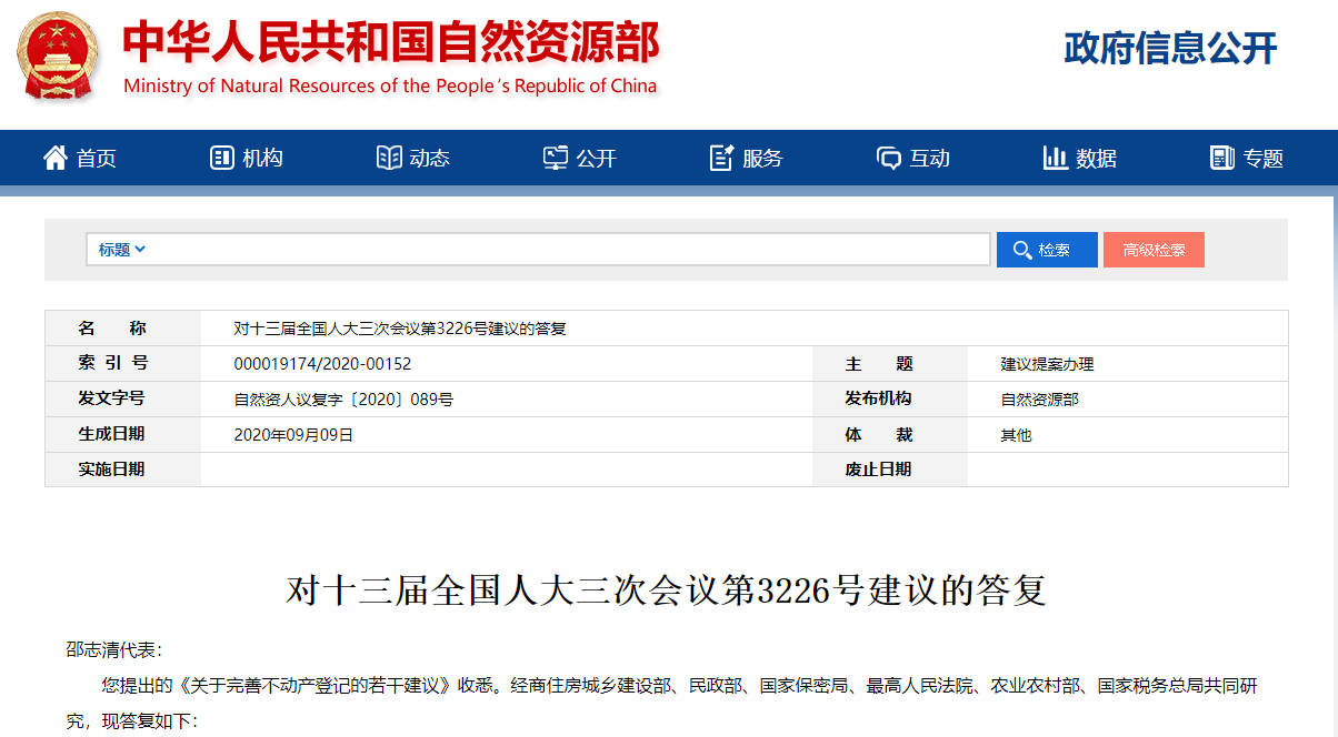 您提出的《關于完善不動產(chǎn)登記的若干建議》收悉。經(jīng)商住房城鄉(xiāng)建設部、民政部、國家保密局、最高人民法院、農(nóng)業(yè)農(nóng)村部、國家稅務總局共同研究,現(xiàn)答復如下: