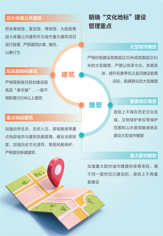 “文化地標(biāo)”是一座城市“精氣神”的集中體現(xiàn),富有歷史文化底蘊(yùn)的建筑、雕塑等,在營造公共環(huán)境、提升文化品位、塑造城市風(fēng)貌等方面發(fā)揮著重要作用。但有些地方建設(shè)的地標(biāo),忽視本地實際、割裂歷史文脈,不僅違背了城市發(fā)展規(guī)律,也破壞了生態(tài)環(huán)境和歷史文化風(fēng)貌。