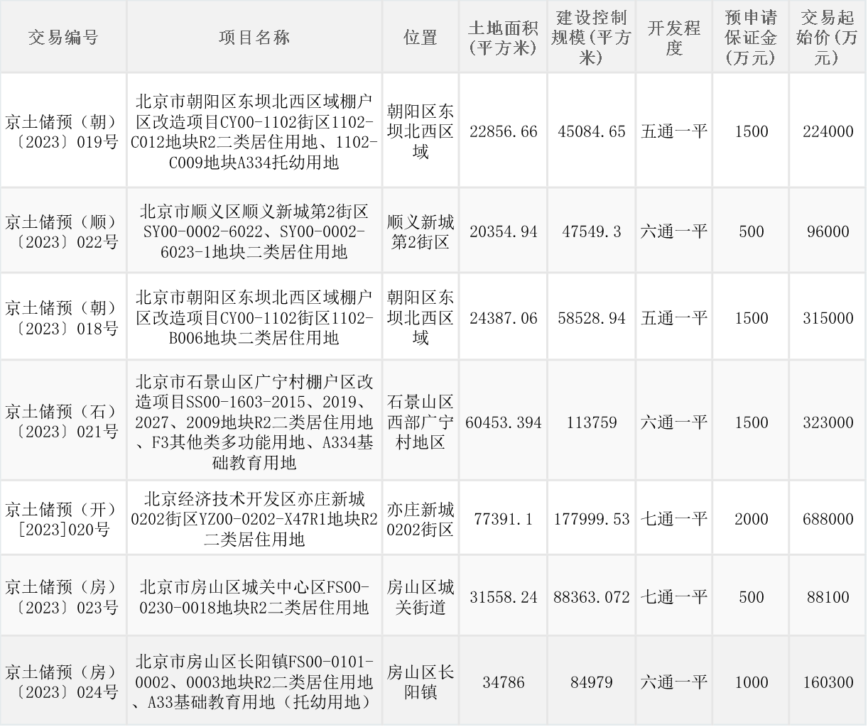 央廣網(wǎng)北京5月8日消息 5月6日晚間,北京市規(guī)劃和自然委員會掛牌7宗預(yù)申請住宅用地。其中,朝陽區(qū)、房山區(qū)各兩宗,經(jīng)開區(qū)、順義區(qū)、石景山區(qū)各一宗,總土地面積約27.18萬平方米,總建設(shè)控制規(guī)模約61.63萬平方米,總起始價189.44億元。