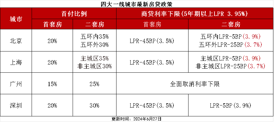 本次北京住房信貸政策調(diào)整后,四大一線城市中,北京、上海、深圳首套和二套最低首付比例降至20%和30%,體現(xiàn)了住房信貸政策的差別化。不過,業(yè)內(nèi)人士也表示,上述三個城市的利率水平最低3.5%,二套3.7%和3.9%或仍有下降的空間。