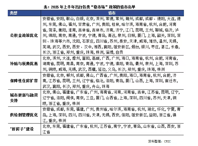 2025年上半年,中央和相關(guān)部門持續(xù)發(fā)聲釋放樓市政策利好,并落地具體舉措,涵蓋去庫存、擴需求、新模式、化風險等方面,例如專項債收購存量閑置土地、收購存量商品房,加力實施城中村改造和降低5年期以上LPR,推進“好房子”建設等。